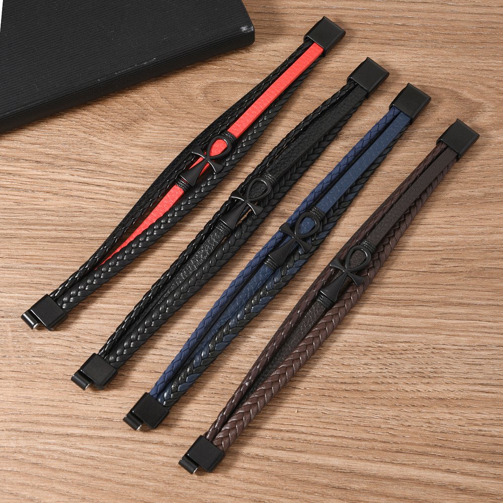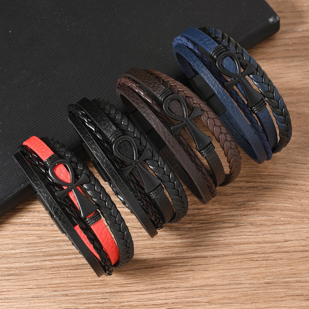 Pulsera azul de 4 tiras con llave de la vida